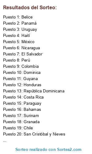 Lista de participantes: Antigua y Barbuda, Bahamas, Barbados, Belice, Canadá, Chile, Colombia, Costa Rica, Cuba, Dominica, Ecuador, El Salvador, Granada, Guyana, Haití, Honduras, Jamaica, México, Nicaragua, Panamá, Paraguay , Perú, República Dominicana, San Cristóbal y Nieves, San Vicente y las Granadinas, Santa Lucía, Surinam, Trinidad y Tobago, Uruguay, Venezuela.