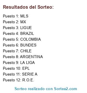 Lista de participantes: EPL, BUNDES, LA LIGA, LIGUE, SERIE A, R.O.E., MLS, MX, CHILE, BRAZIL, ARGENTINA, COLOMBIA.