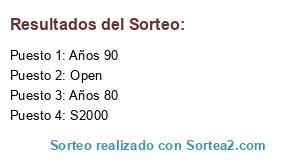 Lista de participantes: Años 80, Años 90, S2000, Open.