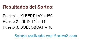 Lista de participantes: JOEL = 3, MKL_ELGRANENRIC = 337, MKL SONGOKI90 = 44, THEXEROX = 96, CALVEJOO = 117, ISMAEL30_23 = 8, LOBITO COLORES = 25, ANGELLFDEZZ = 15, FABIAN_= 4, YUNAY (DELTX) = 115, PIKATSM = 34, INFINITY = 14, ALBERTO Y ERIC = 186, IAMGEORGE = 36, YIT´S SAMURAI = 66, KLEERPLAY= 150, HOPESOSA = 64, FENIX = 75, DAVOR= 5, BOBLOBCAT = 10, IZANJC = 5.