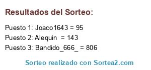 Lista de participantes: Alequin = 143, Bandido_666_ = 806, mike el lobo de colores = 430, aitor__800 = 123, XxSkvR = 141, Joaco1643 = 95, Mrcatlegend = 25.