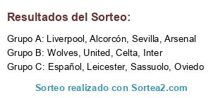 Lista de participantes: Arsenal, Celta, Oviedo, Liverpool, Wolves, Sassuolo, United, Alcorcón, Inter, Sevilla, Leicester, Español.