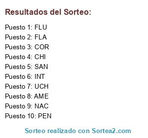 Lista de participantes: AME, CHI, COR, FLA, FLU, INT, NAC, PEN, SAN, UCH.