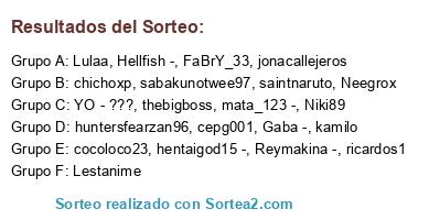 Lista de participantes: hentaigod15 -, Reymakina -, Hellfish -, Gaba -, mata_123 -, chichoxp, kamilo, Lulaa, Niki89, Neegrox, ricardos1, jonacallejeros, Lestanime, cepg001, saintnaruto, thebigboss, sabakunotwee97, FaBrY_33, cocoloco23, huntersfearzan96, YO - ???.