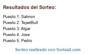 Lista de participantes: Pedro, Jose, Algar, Salmon, TepetBull.