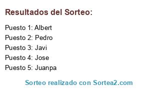 Lista de participantes: Jose, Albert, Javi, Pedro, Juanpa.