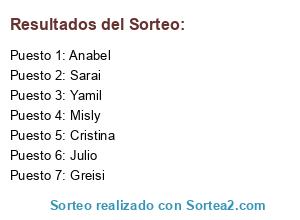 Resultados del sorteo: