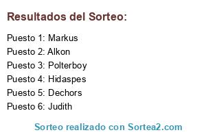 Lista de participantes: Markus, Polterboy, Dechors, Alkon, Hidaspes, Judith.