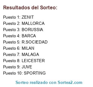 Lista de participantes: MILAN, BARCA, MALAGA, SPORTING, BORUSSIA, LEICESTER, MALLORCA, R.SOCIEDAD, ZENIT, JUVE.