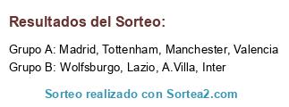 Lista de participantes: Valencia, Wolfsburgo, Madrid, Lazio, Manchester, A.Villa, Inter, Tottenham.