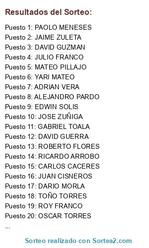 Resultados del sorteo: