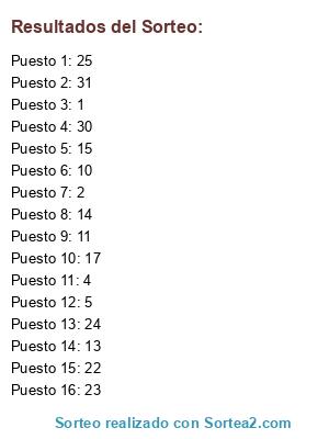 Resultados del sorteo: