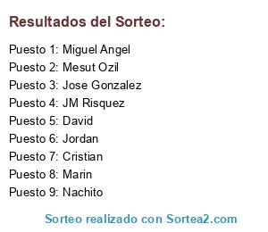 Lista de participantes: Marin, Miguel Angel, Jose Gonzalez, David, Cristian, Jordan, Mesut Ozil, Nachito, JM Risquez.