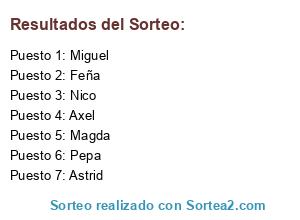 Lista de participantes: Axel, Magda, Feña, Astrid, Miguel, Nico, Pepa.