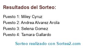 Lista de participantes: Selena Gomez, Miley Cyruz, Tamara Gallardo, Andrea Alvarez Arcila.