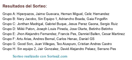 Lista de participantes: Jair Gonzalez, Gaia Fingolfin, Hernan Miguel, Jhon Alejandro Fernandez, Gabriel Buque, Joseph Louis Pineda, Teo Aiuspuro, Serrano Pes, Cesar Martinez, Nery Jacobo, Danniel Ballen, Adriancho Boada, Jose Olarte, Jesus Perez Gaona, Artu Arias, Juan Villegas, Andres Bernal, Jonthan Madrigal, Hiperpazos, Betinho Betinho, Jaime Guevara, Carlos Henao, Good Son, Daniel GS, Cristian Andres Castro, Sergio Ruiz, Miikii Paton, Francis Pes, Celic Hernandez, David Alejandro Pelaez, Sin Equipo 1, Sin equipo 2.
