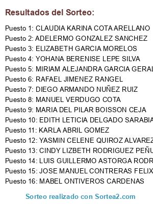 - Puesto 13: CINDY LIZBETH RODRIGUEZ PEÑUELAS
