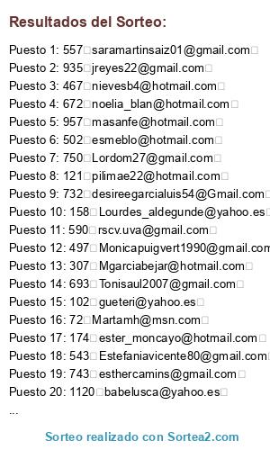 - Puesto 19: 743 esthercamins@gmail.com