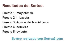 Lista de participantes: ester.saenz.camara, arnedo zafiro, anaquipe, maria.reinosa, virgi_machela, perezvelillana, hotel marr, i_icaceta, rafant45, ivaupe, begoespi1980, royovalverde, itzymonterika, prezmuro, Aguilar del Río Alhama, gemelaura1, laurencia_24, fatima722, zurrita78, monica_m79, marianyanmo, maju1982, lolaguapaberga, aerevilla, lolasainzberga64, mujeresbergasa, olgamartinez959, nuriaeroyo, meritxellandrea, rebekadv, airungarcia, Josemiguelmartinezlosa, janireruizsaenz, silviaqui, katissa23, morandelosmontes, sorayaroyo76, adelachandro, esloji_23, marisaherce, blas.laalameda, mparadros, laurapmggcp, g.herce, amadorberdonces, angelacrea, evelynhernaiz, lidiaroncero, isagimeno65, brujitambn, caldonza, bodegamovil1, esloji.23, sergioltpuche, Santa Eulalia Bajera, vapozogarcia, maytebm70, raquelcala2, yoliautol, eviautol, msejmrb2002, azumolinos.