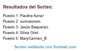 Lista de participantes: Rachel Flowers, Elba Cilo Coco, Ana Belén Ortiz Langa, Silvi Aguiló, Ana López, Silvia Oriol, Teresa Terrn, Moni Borobio, Pauline Aznar, Ana Gustrán Loscos, María Martínez, Jesús Baquerizo, María Serrano, ouimaisnom, MaryCarmen_B, gafolito.