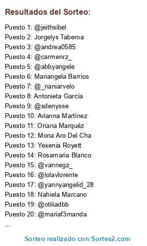 Lista de participantes: @carmenrz_, Arianna Martínez, @nelita_25, Yexenia Royett, @jeithsibel, Mariangela Barrios, @vannegz_, Oriana Marquéz, @im_papitafrita, Mona Aro Del Cha, @_naniarvelo, Rosamaria Blanco, @mariaf3rnanda, Antonieta García, @miss_lucy1, Jorgelys Taberoa, @andreacarool, Vanessa Rivas, @yannyangelid_28, Nahiela Marcano, @andrea0585, @otiliadbb, @vscoleccion, @sdenysse, @aurolism3, @marycgl, @abbyangele, @majo_98, @sharonfandino, @lolavlorente, @cherpew, @veronicasanchez94, @aniitaromero.
