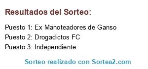 Lista de participantes: Ex Manoteadores de Ganso, Drogadictos FC, Independiente.