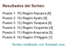 Lista de participantes: 10) Región Atacama [6], 11) Región Araucania [5], 12) Región Coquimbo [4], 12) Región Tarapacá [4], 14) Región O'Higgins [1], 15) Región Aysén [0].