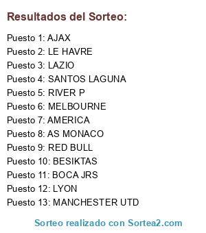 Lista de participantes: AJAX, AMERICA, AS MONACO, BESIKTAS, BOCA JRS, LAZIO, LE HAVRE, MANCHESTER UTD, MELBOURNE, LYON, RED BULL, RIVER P, SANTOS LAGUNA.