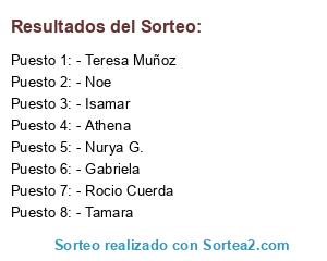 Lista de participantes: - Noe(2 participaciones), - Nurya G.(2 participaciones), - Isamar, - Athena, - Rocio Cuerda, - Tamara, - Teresa Muñoz, - Gabriela(2 participaciones).