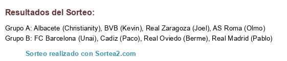 Lista de participantes: Real Oviedo (Berme), Cadiz (Paco), FC Barcelona (Unai), Real Zaragoza (Joel), Albacete (Christianity), Real Madrid (Pablo), AS Roma (Olmo), BVB (Kevin).