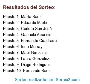 Resultados del sorteo: