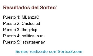 Lista de participantes: mamen2815, AlbertoZurera, Iciar_15, MLanzaC, thegirlxp, Miriam__Tarrat, japalomo4, macumm76, isthatasenav, Crislucrod, MiriamCantero1, jogarparra, politica_sur, BelenLanchazo, albariverol.