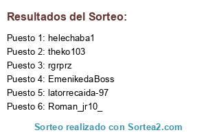Lista de participantes: rgrprz, Roman_jr10_, latorrecaida-97, theko103, EmenikedaBoss, helechaba1.