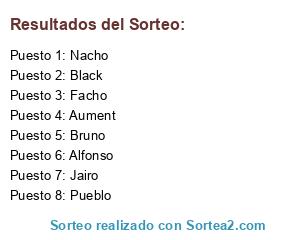 Lista de participantes: Facho, Alfonso, Pueblo, Jairo, Nacho, Black, Aument, Bruno.