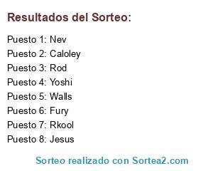 Lista de participantes: Rod, Walls, Jesus, Fury, Nev, Rkool, Caloley, Yoshi.