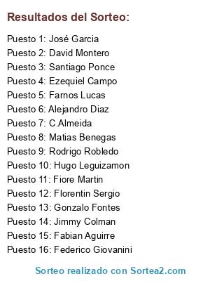 Resultados del sorteo: