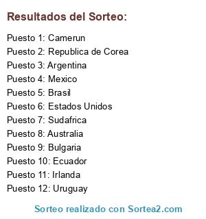 Resultados del sorteo: