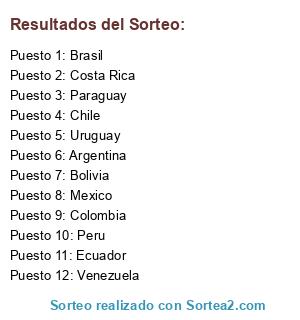 Resultados del sorteo: