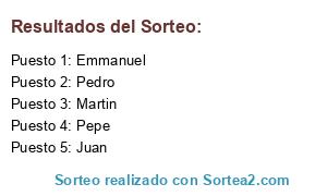 Lista de participantes: Juan, Pepe, Pedro, Martin, Emmanuel.