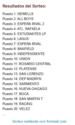 Resultados del sorteo: