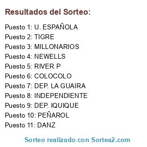 Lista de participantes: DANZ, PEÑAROL, RIVER P, TIGRE, NEWELLS, U. ESPAÑOLA, INDEPENDIENTE, DEP. LA GUAIRA, COLOCOLO, MILLONARIOS, DEP. IQUIQUE.