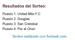 Lista de participantes: San Cristobal, United Mito F.C, Por el Chori, Douglas.