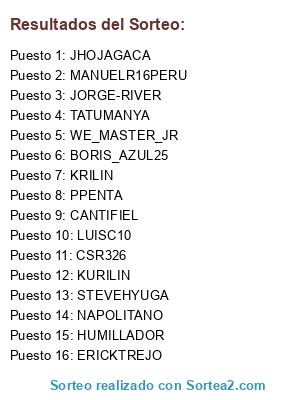 Resultados del sorteo: