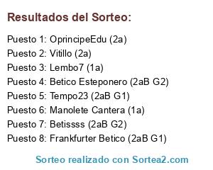 Lista de participantes: Betissss (2aB G2), Manolete Cantera (1a), Vitillo (2a), Tempo23 (2aB G1), Frankfurter Betico (2aB G1), OprincipeEdu (2a), Betico Esteponero (2aB G2), Lembo7 (1a).