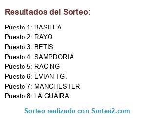 Lista de participantes: CORDOBA, D. LA GUAIRA, R. MADRID, VILLARREAL, AJAX, BOCA JUNIORS, BAYERN MUNICH, BASILEA, VALENCIA, FC PORTO, R. BETIS, PSG, AT. MADRID, RAYO VALLECANO, ATH. BILBAO, SPORTING GIJON, JUVENTUS, SEVILLA, APOEL, BARCELONA.