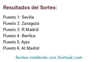 Lista de participantes: Sevilla, At.Madrid, R.Madrid, Zaragoza, Benfica, Ajax.
