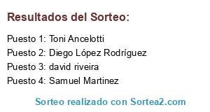 Lista de participantes: david riveira, Samuel Martinez, Toni Ancelotti, Diego López Rodríguez.