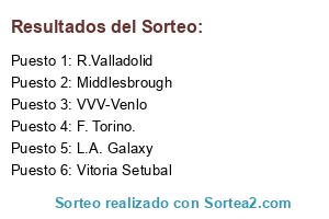 Lista de participantes: L.A. Galaxy, F. Torino., Middlesbrough, R.Valladolid, Vitoria Setubal, VVV-Venlo.