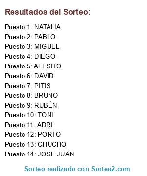 Resultados del sorteo: