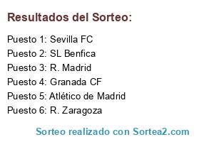 Lista de participantes: SL Benfica, Atlético de Madrid, R. Zaragoza, Sevilla FC, R. Madrid, Granada CF.
